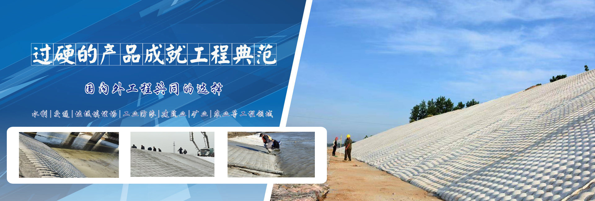 • 公司產(chǎn)品廣泛應(yīng)用于江河航道、湖道海岸、水庫水渠、圍墾造堤、軟基處理等防護(hù)加固工程,并在全國多個重點(diǎn)工程上得到應(yīng)用
